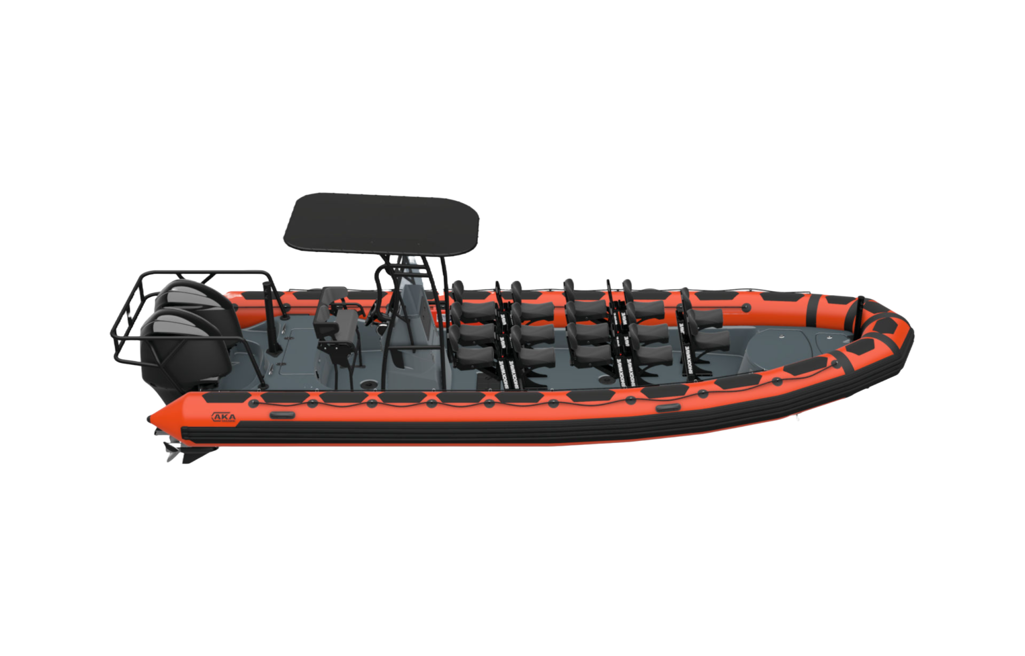 Die AKA Marine R85-C ist ein vielseitiges, leistungsstarkes Festrumpfschlauchboot (RIB) mit tiefem V-Rumpf aus Fiberglas, integriertem 400-Liter-Kraftstofftank (optional 2 × 300 L für längere Reichweite) und selbstlenzendem Deck. Mit einer Länge von 8,50 m, einer maximalen Zuladung von 1.550 kg und Platz für bis zu 14 Personen (Kategorie C) bietet die R85-C herausragende Stabilität, Manövrierfähigkeit und Sicherheit selbst unter anspruchsvollsten Bedingungen.